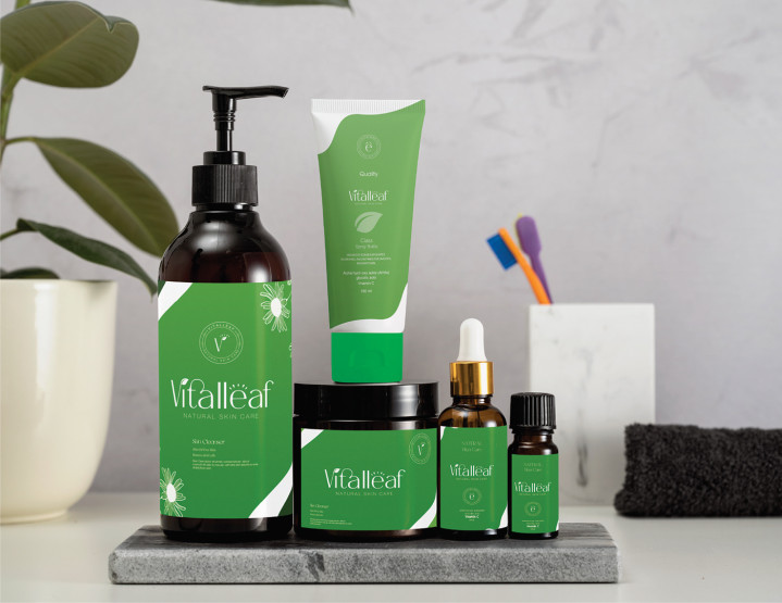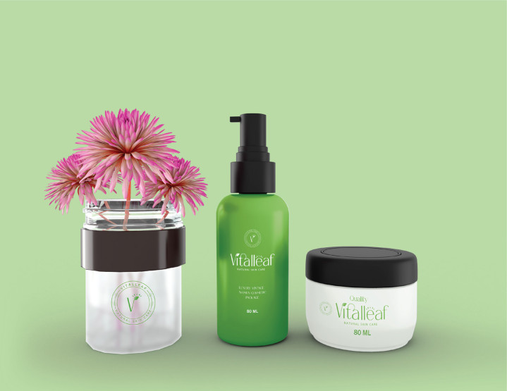 Vifalleaf护肤品牌包装设计紧扣天然、健康理念。以绿色为主色调,呼应品牌追求纯净、可持续的定位,传递自然生机与环保感。包装元素上,融入植物图案,如花朵、叶片等,强化天然护肤属性,视觉上营造清新、温和氛围,材质选择兼顾质感与环保,统一的视觉风格使包装更加脱颖而出。